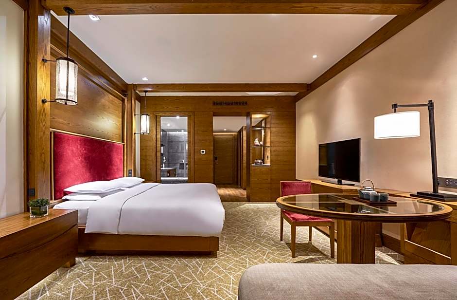 Mountain-resort style, light brown decor and solid wood furniture welcome visitors to this 45-sqm guestroom furnished with one king bed and a daybed. Room offers free access to the club lounge.