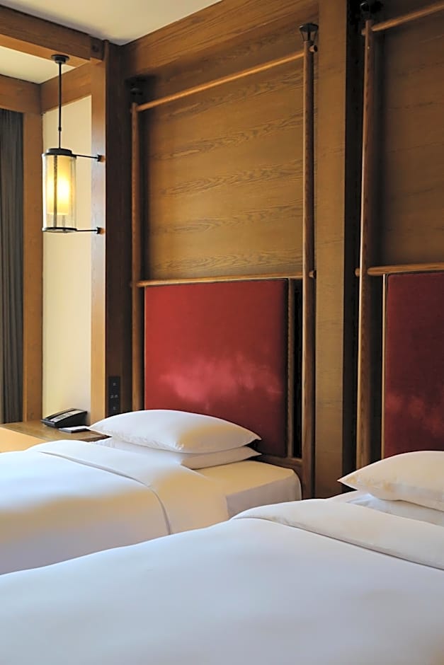 Mountain-resort style, light brown decor and solid wood furniture welcome visitors to this 45-sqm guestroom furnished with two twin beds and a daybed. Room offers free access to the club lounge.